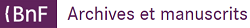 BnF - Base Archives et ManuscritsCatalogue des manuscrits de la BnF pour tous ses départements (Arsenal, Joie par les Livres, musique et arts du spectacle) et partenaires, accessibles en ligne ou non. | |